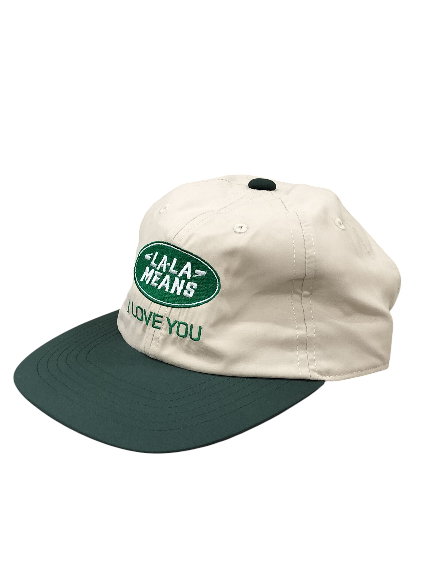 芯無し若干浅めの共生地ストラップバックキャップ。